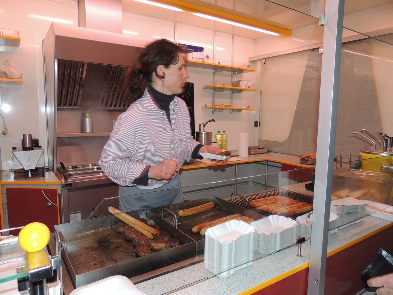 Für das leibliche Wohl sorgte ein Imbisswagen, der mit seinem Angebot an Currywurst und Co. zu gefallen wusste. Zum Eventstart gab es allerdings eine kleine Verzögerung, denn die Inhaber gingen davon aus, dass unsere Veranstaltung aufgrund der desaströsen Wetterlage ausfällt. Zu ihrer Entschuldigung ist aber anzumerken, dass es ihr erster Kontakt mit Geocachern war. Seit wann lassen sich Cacher wegen des Wetters von ihren Outdooraktivitäten abhalten? Sie waren sehr beeindruckt und ließen sich in den seltenen Versorgungspausen unser faszinierendes Hobby in allen Facetten schildern. Vielleicht gibt es bald zwei Geocacher mehr im schönsten Bundesland der Welt.