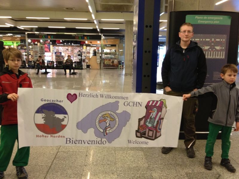 Der 4. Januar bescherte der schönsten Insel der Welt noch einmal einen ordentlichen Schwung Cacher aus dem schönsten Bundesland der Welt. Eine Abordnung des GCHN - Teams an der Playa bestehend aus rolloundbounty, sonnenwende und vossis begrüßte heute Morgen alligateuse, Chilihead68, FliegerEDHK, Highwaygecco, KT-1, Martin, Moepsundpelle, Mrs. Skuriös, Munki7, Opiat, ScottLyle, Thadi, Steppi58 und ulf78 bei ihrer Ankunft auf dem Flughafen. Der supertolle Begrüßungsbanner von Marlis sorgte hier einmal mehr für eine freudige Stimmung bei der Ankunft der Cacher aus dem hohen Norden auf der Sonneninsel. Und die zeigte sich heute nach zwei so Gehtsotagen wieder einmal von ihrer allerbesten Seite. Kein Wölkchen trübte den stahlblauen Himmel als sich die GCHN - Meute nach dem Einchecken im GCHN - Hotel über die Insel verteilte. Abends trafen wir uns dann zur großen Generalprobe an der Eventlocation. Wie schon im Vorjahr erlebten wir mit unserer Community einen schönen Abend, der uns noch lange in Erinnerung bleiben wird